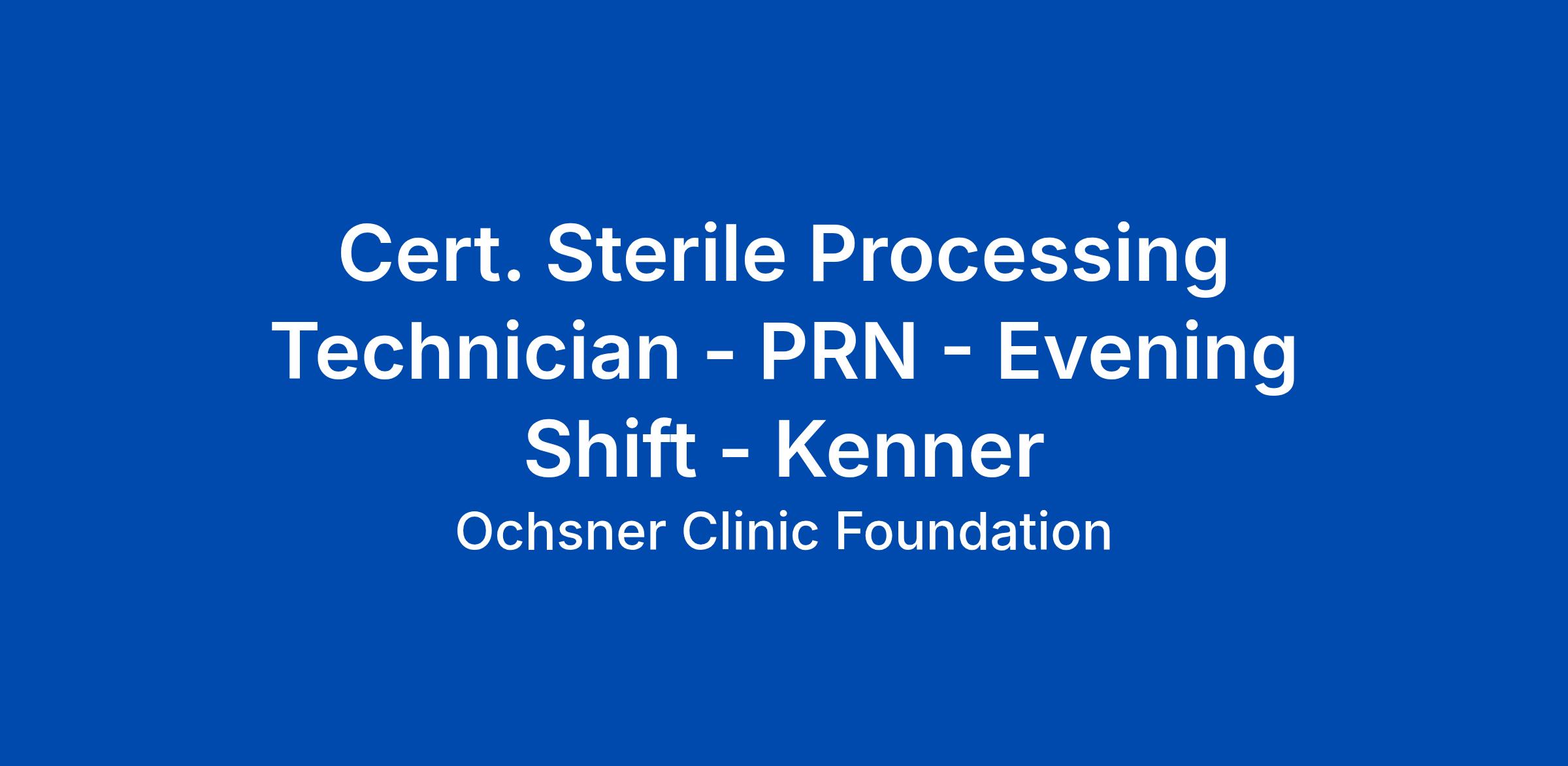 This job assures availability of cleaned, prepared, sterilized equipment and supplies for surgical procedures, functions as a resource for clinical knowledge, and performs other duties as assigned by the SPD Supervisor or Manager of Sterile Processing. Responsibilities include, but are not limited to, receiving, cleaning, distributing, and storing medical instruments and equipment; all job duties are expected to be performed without supervision. This job supports direct patient care in clinical and satellite operations as well as operative suites.Education