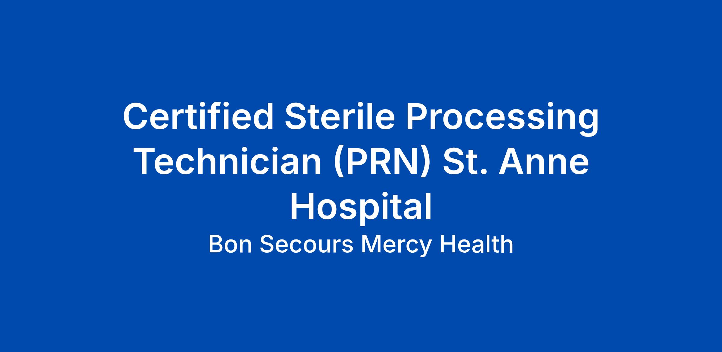 Harmonized - Sterile Processing Technician Certified - St. Anne Hospital