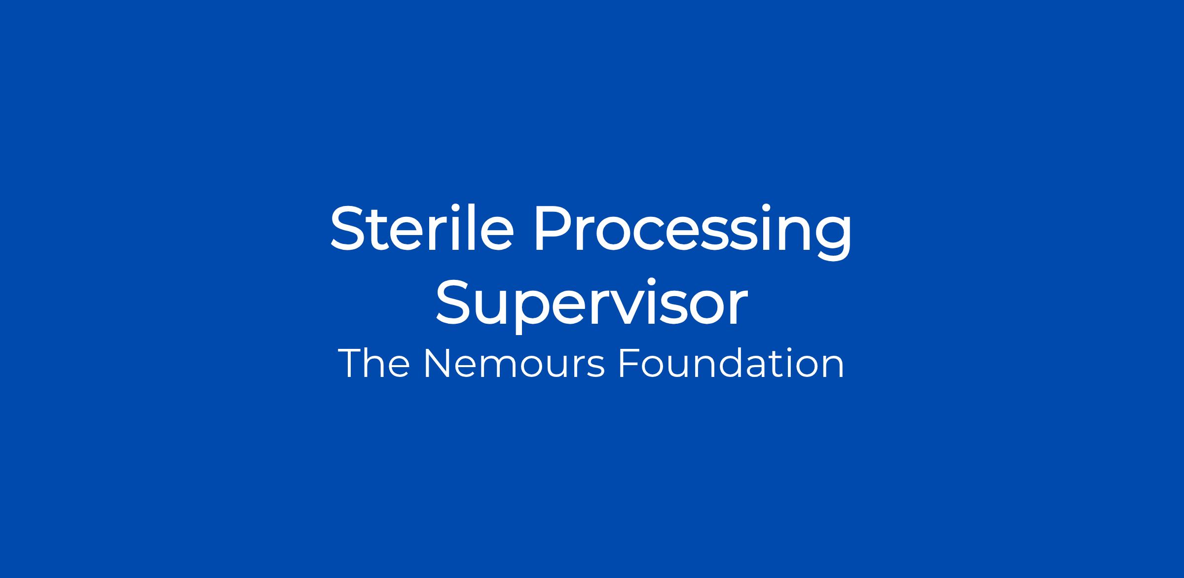 Nemours Children's Health is seeking a 3 PM - 11:30 PM Sterile Processing Supervisor for our location in Wilmington, DE.
