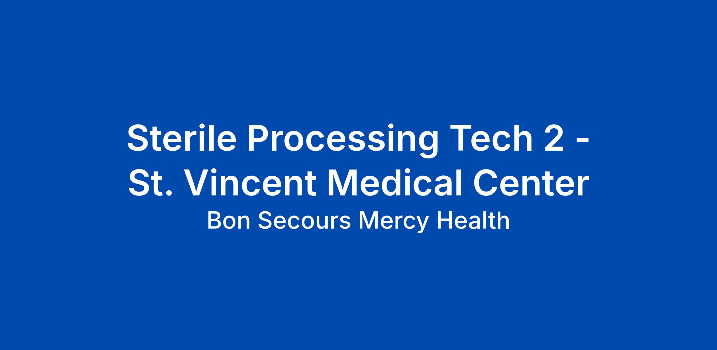 STERILE PROCESS - ST. VINCENTIt is our policy to abide by all Federal and State laws, as well as, the requirements of 41 CFR 60-1.4(a), 60-300.5(a) and 60-741.5(a). Accordingly, all applicants will receive consideration for employment without regard to race, color, national origin, religion, sex, sexual orientation, gender identity, age, genetic information, or protected veteran status, and will not be discriminated against on the basis of disability. If you’d like to view a copy of the affirmative action plan or policy statement for Mercy Health– Youngstown, Ohio or Bon Secours – Franklin, Virginia; Petersburg, Virginia; and Emporia, Virginia, which are Affirmative Action and Equal Opportunity Employer, please email recruitment@mercy.com. If you are an individual with a disability and would like to request a reasonable accommodation as part of the employment selection process, please contact The Talent Acquisition Team at recruitment@mercy.com.