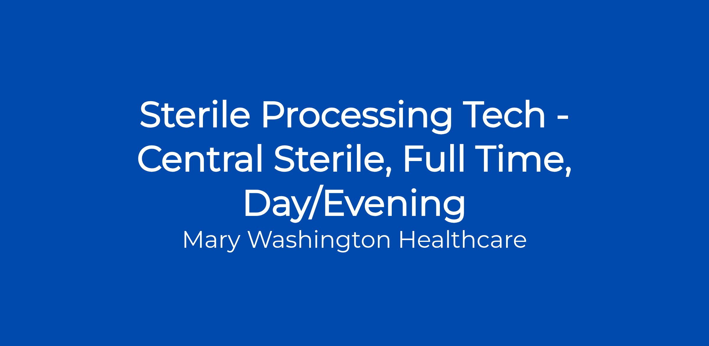 - Current certification in Sterile Processing Technology required within 18 months of hire or placement date.