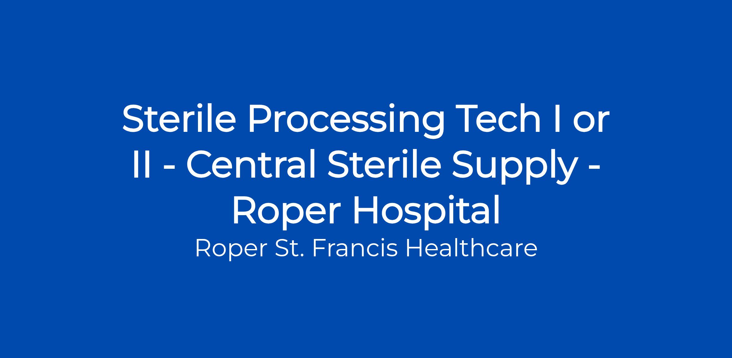 Central Sterile (SPD) - Roper HospitalIt is our policy to abide by all Federal and State laws, as well as, the requirements of 41 CFR 60-1.4(a), 60-300.5(a) and 60-741.5(a). Accordingly, all applicants will receive consideration for employment without regard to race, color, national origin, religion, sex, sexual orientation, gender identity, age, genetic information, or protected veteran status, and will not be discriminated against on the basis of disability. If you are an individual with a disability and would like to request a reasonable accommodation as part of the employment selection process, please contact The Talent Acquisition Team at recruitment@RSFH.com.