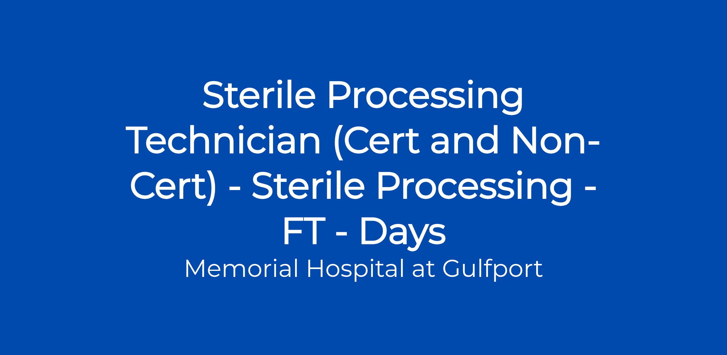Experience: Previous experience in a Sterile Processing Department.