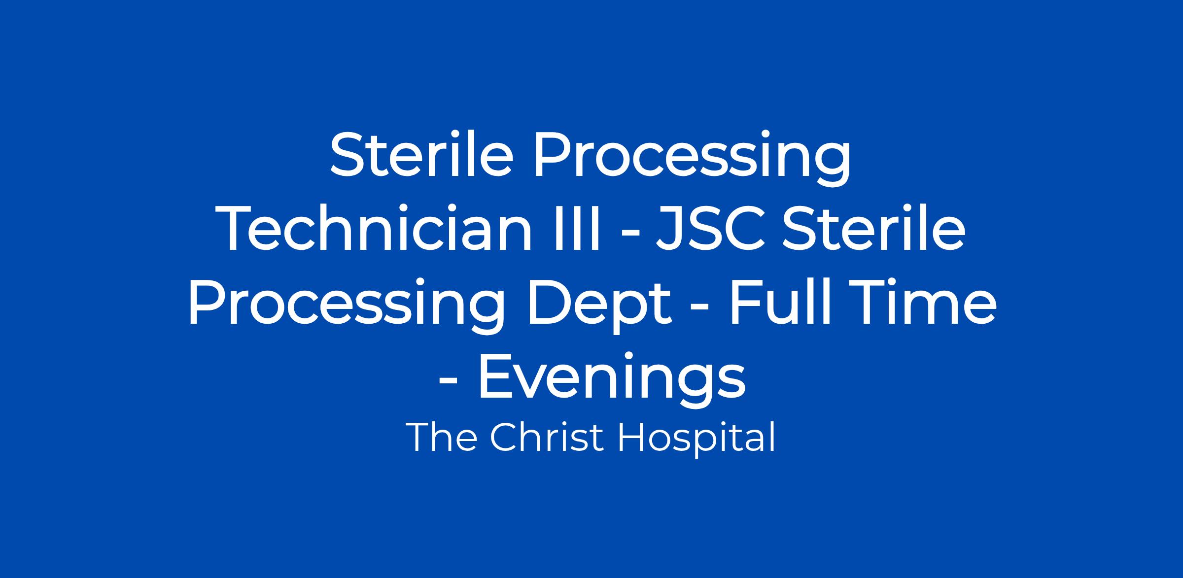 DescriptionThe role of the Sterile Processing Tech III is to deliver onsite training for the Sterile Processing Department while working with The Sterile Processing Educator. Communicating the needs of the educator, with up-to-date training, and education within the Sterile Processing Department team is a crucial part of this role.